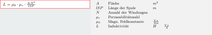 $ l_{SP} = \mu _{0} \cdot \mu _{r} \cdot \frac{A\cdot N^{2} }{L} $